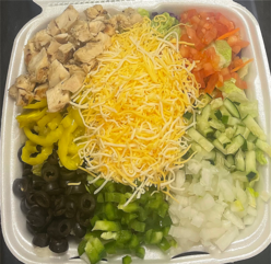 Lettuce, Tomato, Onion,Green Pepper, Cucumber, Black Olive, Banana Peppers, Cheese